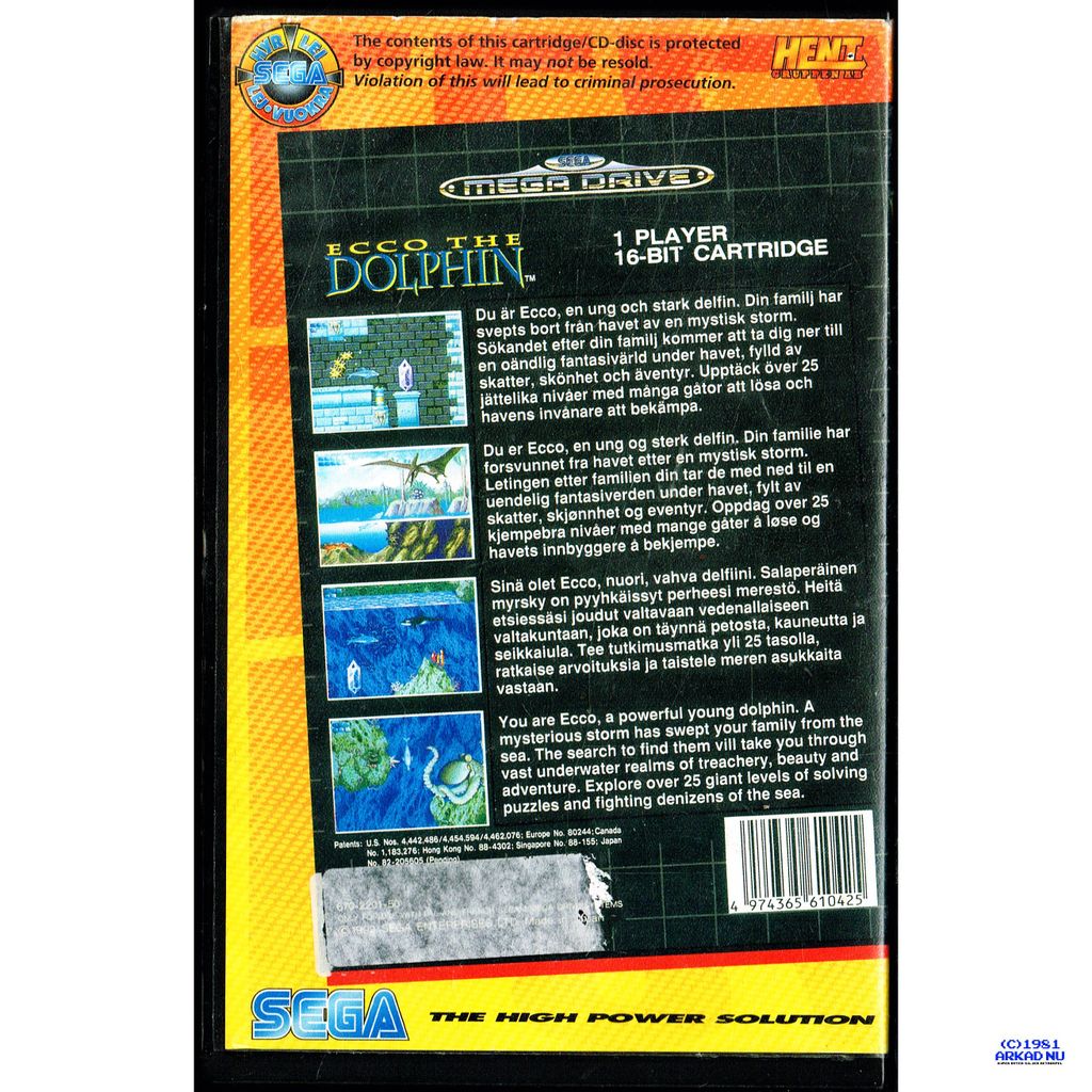 Beskrivning av ECCO THE DOLPHIN MEGADRIVE HENT HYRUTGÅVA