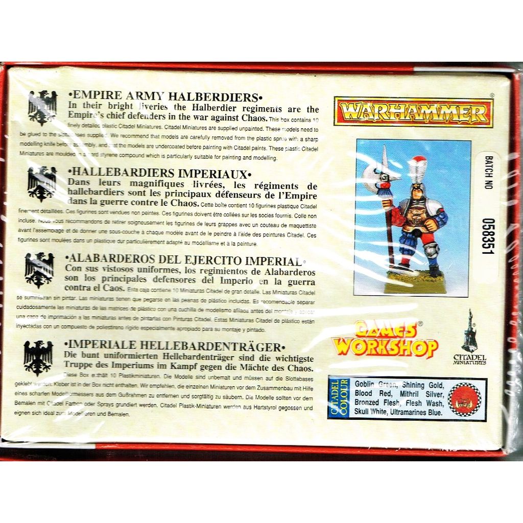 Beskrivning av EMPIRE ARMY HALBERDIERS WARHAMMER GAMES WORKSHOP 1994 EMPIRE ARMY HALBERDIERS WARHAMMER GAMES WORKSHOP 1994 - 0759 - BATCH 058351 DETTA ÄR EN NY PRODUKT