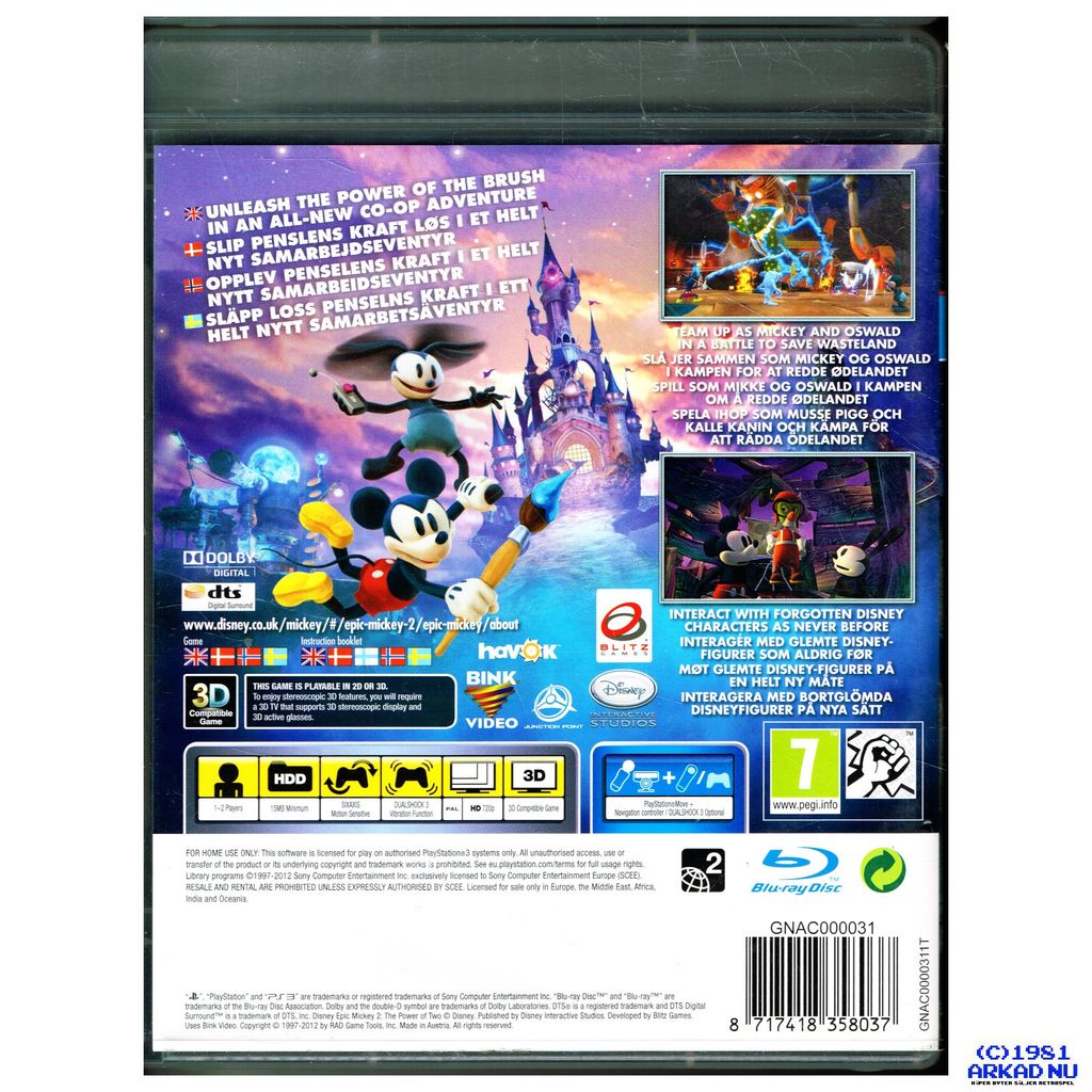 EPIC MICKEY 2 THE POWER OF TWO PS3 - BLES-01628 - SPELET ÄR PÅ SVENSKA