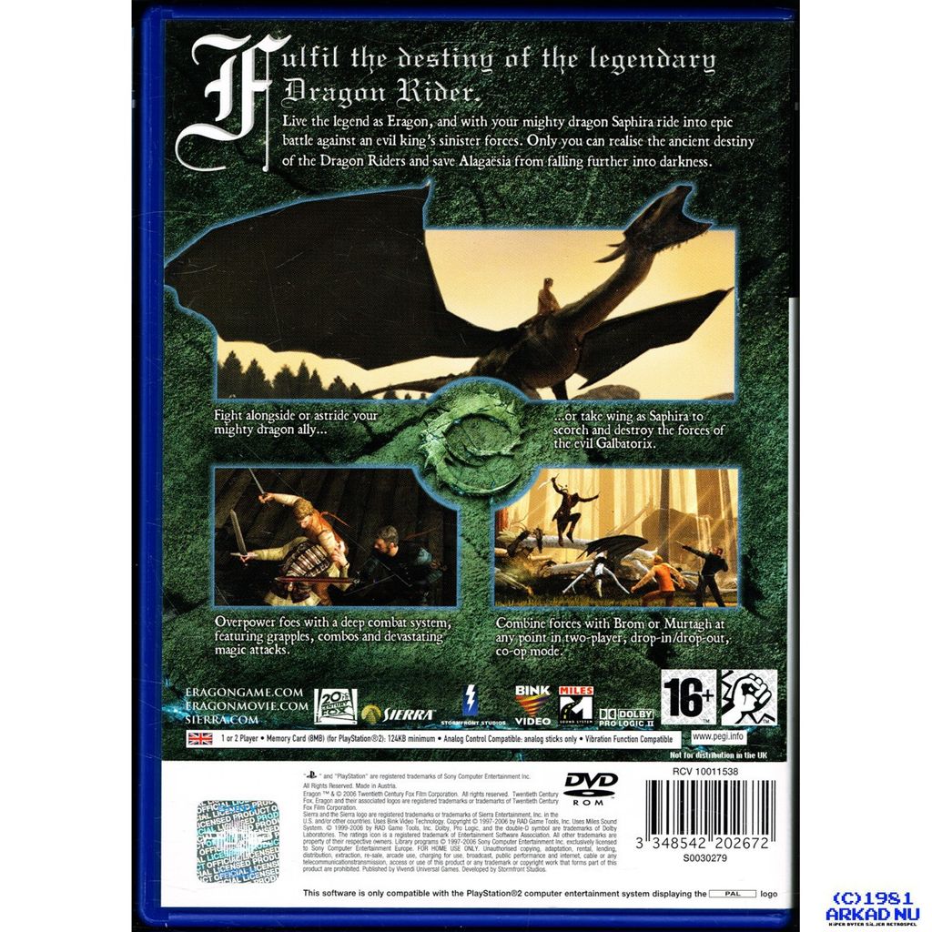 The game is based upon the Eragon film, which is in turn loosely based on the book Eragon, by Christopher Paolini. The games were released on November 14, 2006 in the United States of America, on November 24, 2006 in European and on November 23, 2006 in Australia in order to coincide with the release of the film. In the game the player takes on the role of the protagonist from the book and film, Eragon, and occasionally controls his dragon Saphira.