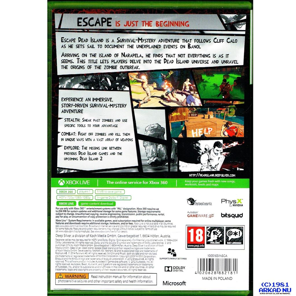 Escape Dead Island är ett "Survival Mystery", ett äventyr där vi får följa Cliff Calo som ger sig ut för att dokumentera en rad oförklarliga händelser på ön Banoi. När han kommer till ön Narapela upptäcker han att allt inte är vad det verkar på ytan. I det här spelet får du dyka djupt in i Dead Islands värld och försöka hitta källan till zombieutbrottet. Flykten är bara början.