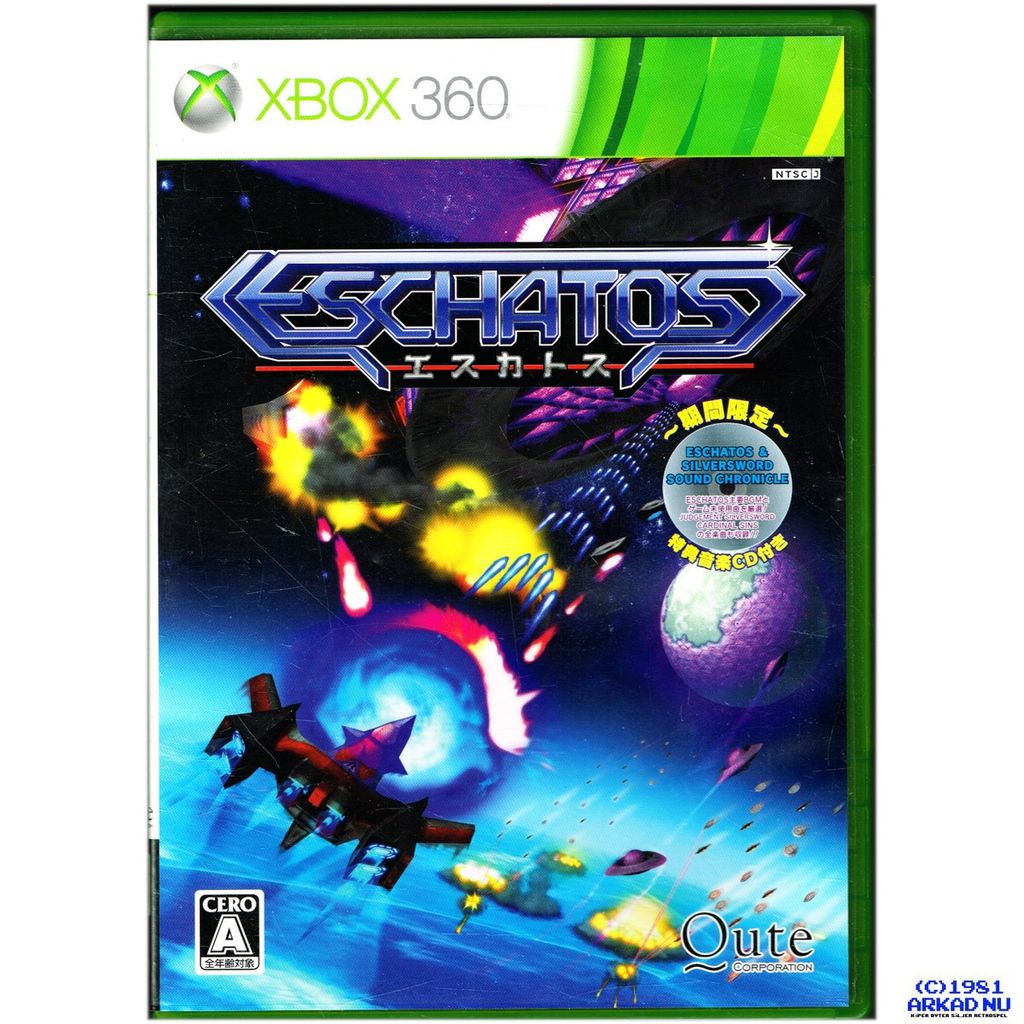 Eschatos is a scrolling shooter, developed and published by Qute, which was released on April 7, 2011 for the Xbox 360. Despite the original Xbox 360 version only being released in Japan, it was a region-free release. A version for Microsoft Windows, published by Degica, was released in 2015. In 2021, Eschatos was ported to the Nintendo Switch exclusively in Japan, and was released worldwide on the Switch and PlayStation 4 in 2022. Apart from the main game, two previous Wonderswan games by the developer, Judgement Silversword and Cardinal Sins, came bundled with the Xbox 360 release of Eschatos.