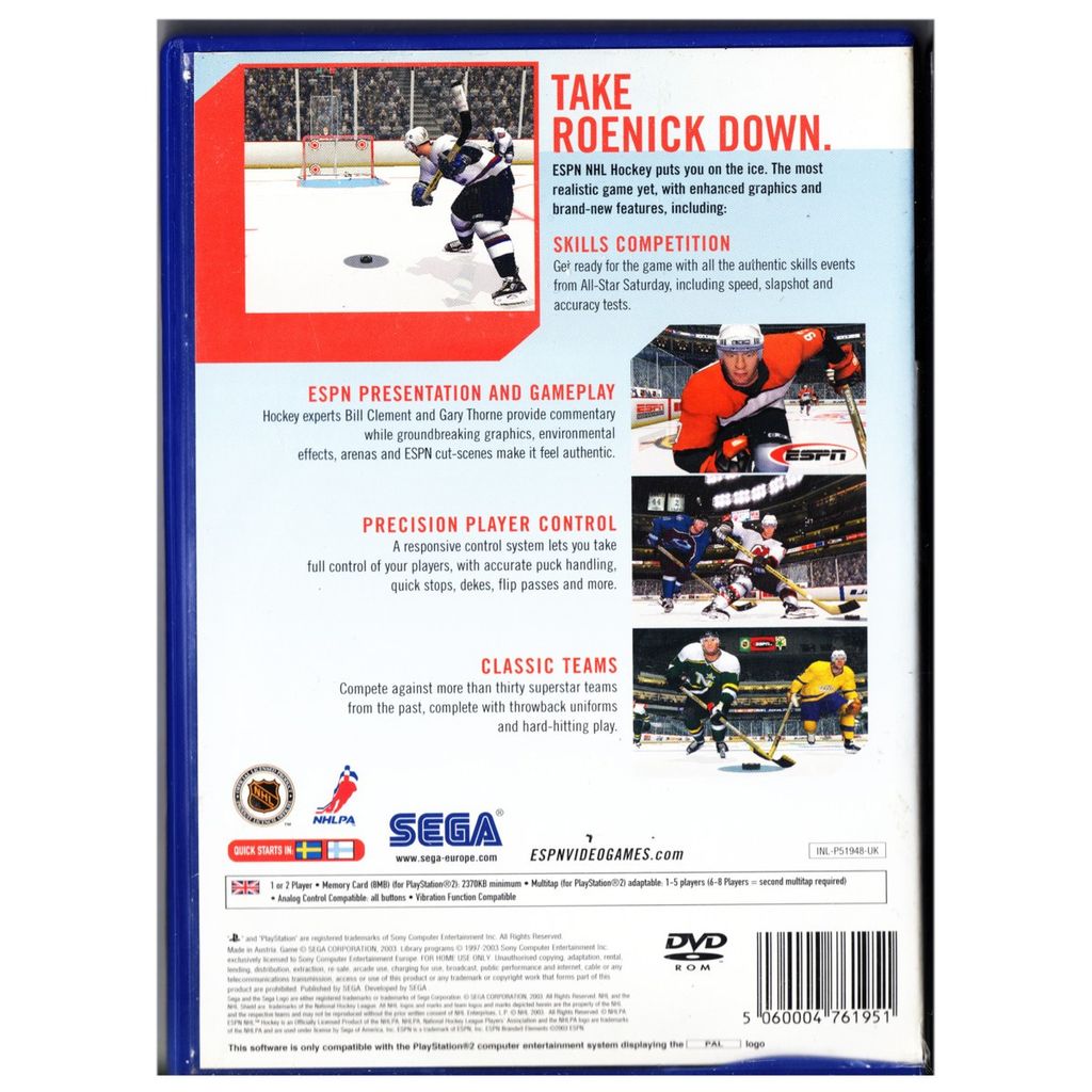 ESPN NHL Hockey is a video game released by Sega in 2003. It was released for the PlayStation 2 and Xbox.