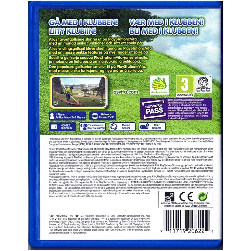 Spelet utnyttjar PS Vitas styrkor – gyroskop, pekskärm och bakpanel – för att ge en unik och responsiv spelupplevelse. Oavsett om du jagar birdies, duellerar online eller spelar en snabb runda på språng, levererar Everybody’s Golf lättillgänglig spelglädje med djup för både nybörjare och proffs.