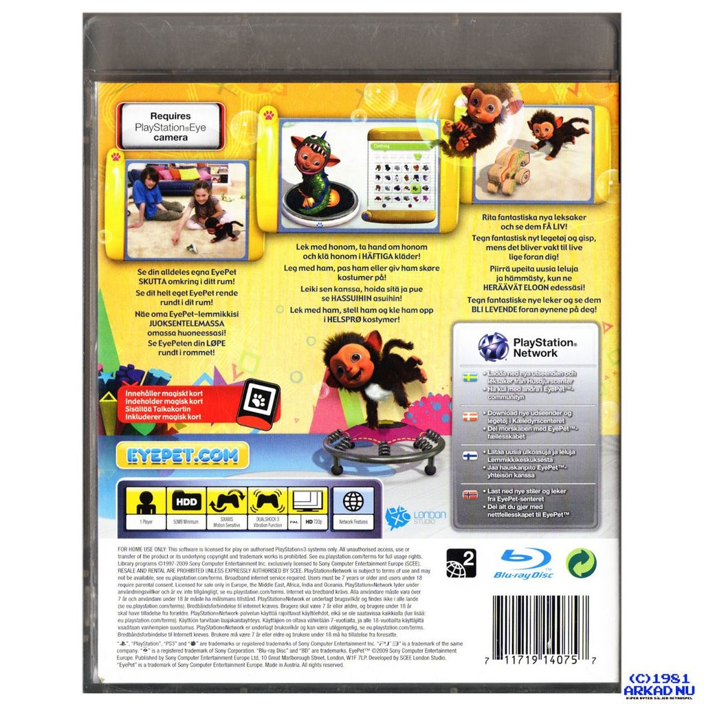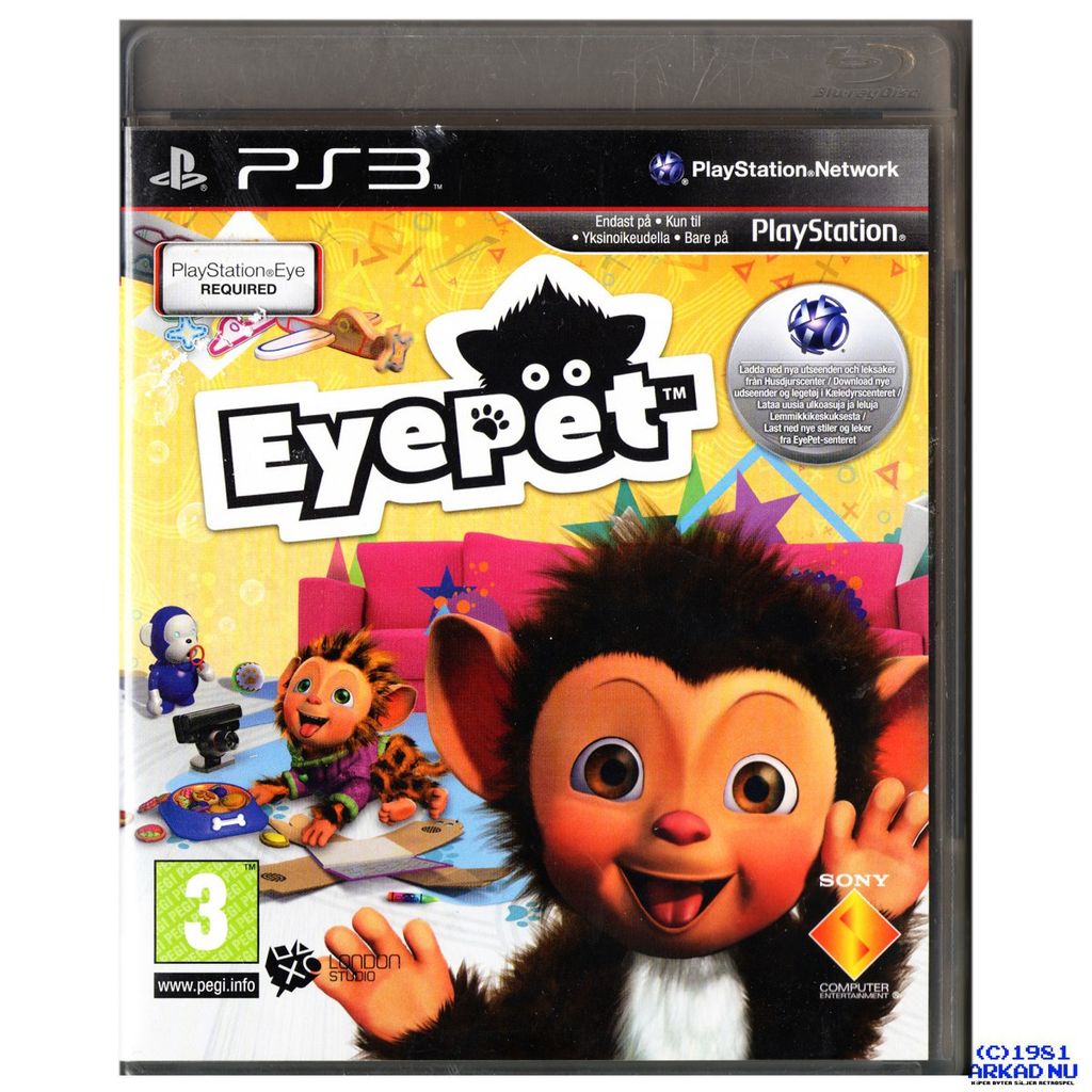 EyePet is a virtual pet simulation game with augmented reality elements. The game uses PlayStation Eye camera to bring the cute fluffy pet to life in the player's living room. The player can interact with the creature in a variety of ways: play with the pet using their hands (motion tracked by the PlayStation Eye), feed and wash the pet, draw for it and make it react to the drawing etc. Activities unlock multiple items of customization and clothing for the pet and materials to construct new toys. The game package includes "Magic card" - a small card that needs to be placed on the floor in front of the TV and it defines the play area for the pet.
