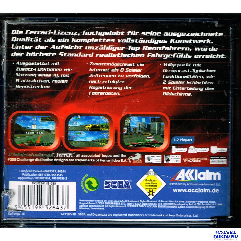 F355 CHALLENGE PASSIONE ROSSA DREAMCAST TYSK UTGÅVA - T-8118D-18