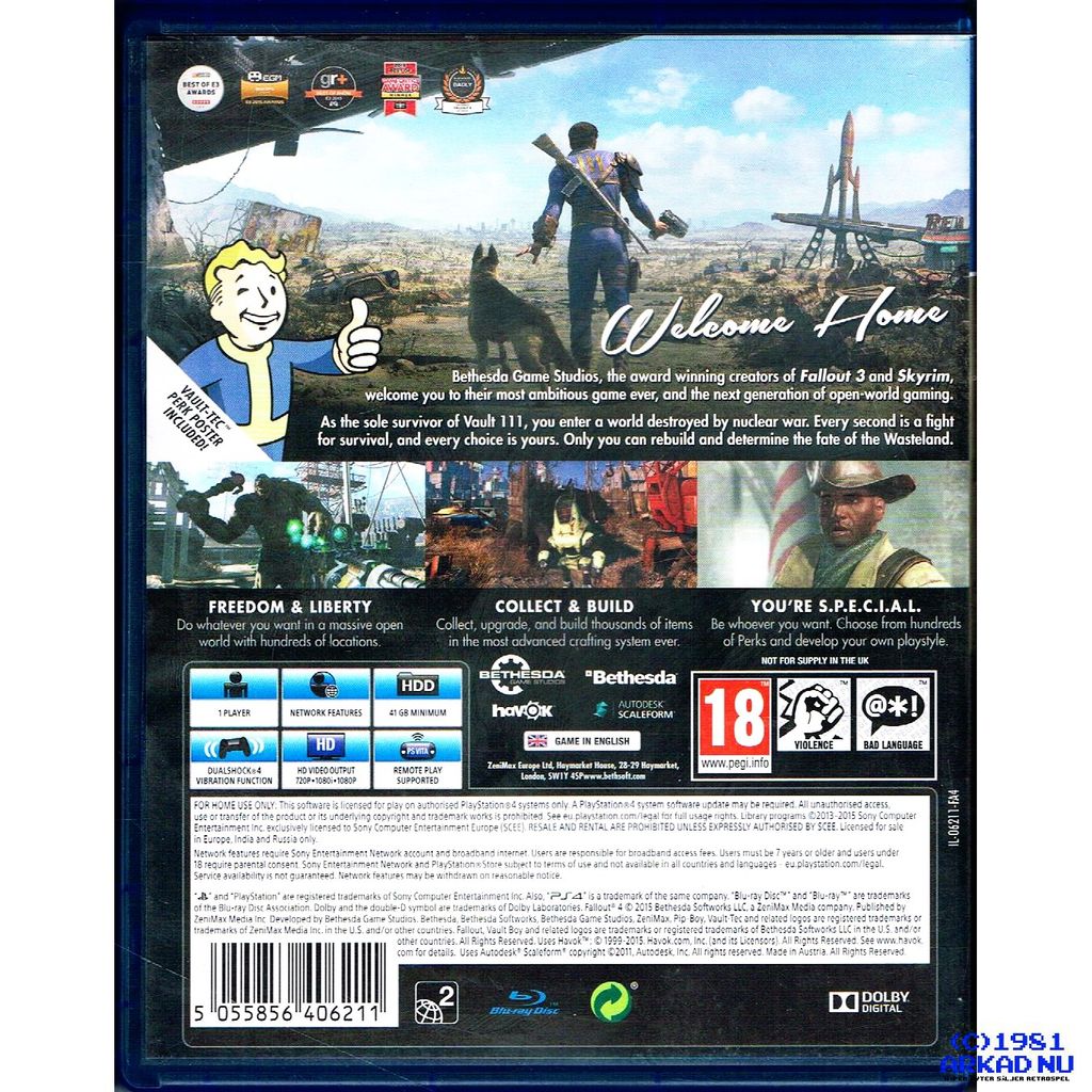 Bethesda Game Studios, den prisbelönta skaparen av Fallout 3 och The Elder Scrolls V: Skyrim, välkomnar dig till Fallout 4 - deras mest ambitiösa spelet någonsin.