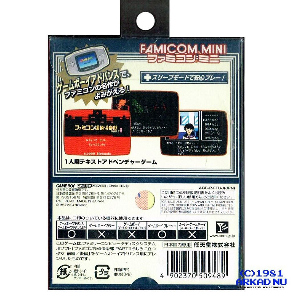 FAMICOM MINI SERIES VOL 28 TANTEI KURABU I USHIRO NI TATSU SHOUJO GBA JAPANSK