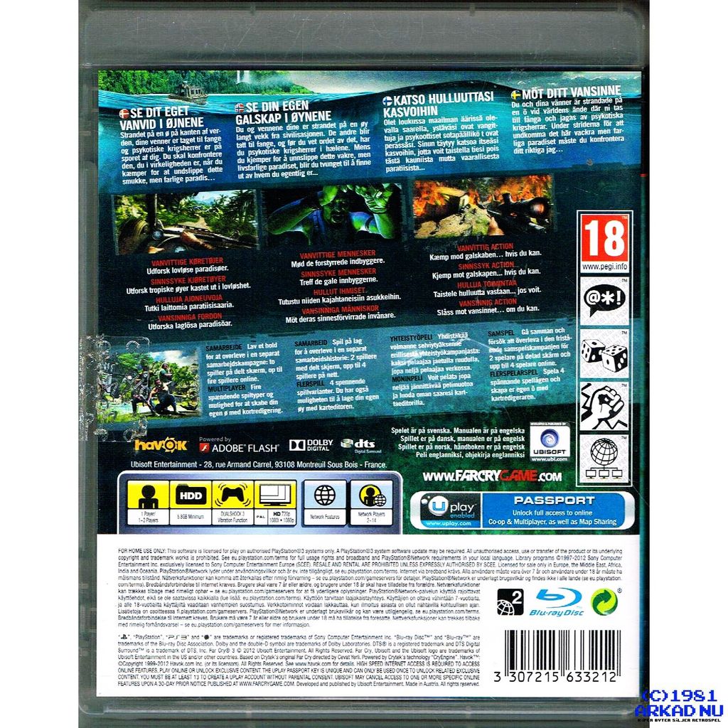 Far Cry 3 utspelar sig på en tropisk ö som ligger någonstans mellan Indiska Oceanen och Stilla Havet. Huvudkaraktären (som man styr) är Jason Brody som med sin flickvän Lisa Snow och hans bröder och vänner reser till en tropisk ö i stilla havet. De bestämmer sig för att glidflyga och hamnar då på en ö som kontrolleras av pirater. De hamnar dock på olika ställen och huvuduppdraget för Jason är att hitta och/eller rädda sina vänner. Alla blir fasttagna och satta bakom galler av en "pirathövding" som heter Vaas Montenegro. Jason lyckas fly och blir sedan omhändertagen av Dennis Rogers som är medlem i Rakyat, öns urinvånare. Denna "grupp" styrs av prästinnan Citra Talugmai som är Vaas syster. Urinvånarna lär Jason jaga och strida, och han får också stridstatueringar som har ganska stor betydelse i spelet.