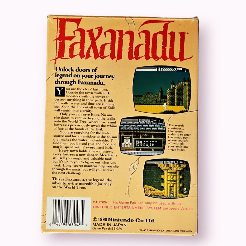 Faxanadu spelas en skärm åt gången, då huvudpersonen når slutet av en skärm så scrollar den vidare till nästa område. I övrigt fungerar det som ett typiskt plattformsspel. Då man har ihjäl fiender tappar de endera guld eller mat som ger energi. För varje fiende får man också erfarenhetspoäng som används för att gå upp i nivå. Spelet bygger på ett lösenordssystem, där man ges "mantran" av olika gurun som finns i tempel i spelet. Samma gurun ökar också spelarens nivå när erfarenhetspoängsgränsen är uppnådd.