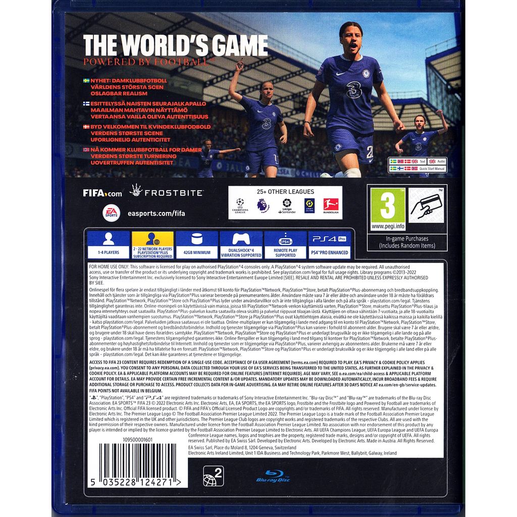 EA SPORTS FIFA 23 ger ännu mer action och realism från fotbollen till planen i The World s Game. Spela de största mästerskapen i fotboll i både herrarnas och damernas FIFA VM-mästerskap som kommer till FIFA 23 under säsongen. Spela med damernas klubblag för första gången någonsin och du kan även ha kul med cross play-funktioner som gör det enklare att spela mot vänner. Njut av ett nytt sätt att spela och bygg ditt drömlag i FIFA Ultimate Team med FUT Moments och ett omarbetat Chemistry-system, eller lev ut dina fotbollsdrömmar i Career Mode när du definierar din personlighet som spelare eller coacha som några av fotbollen mest kända namn.