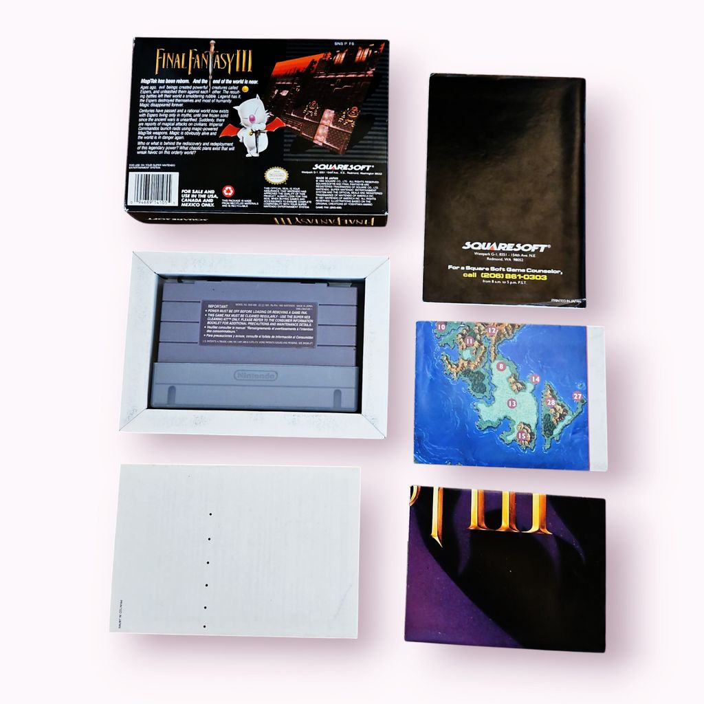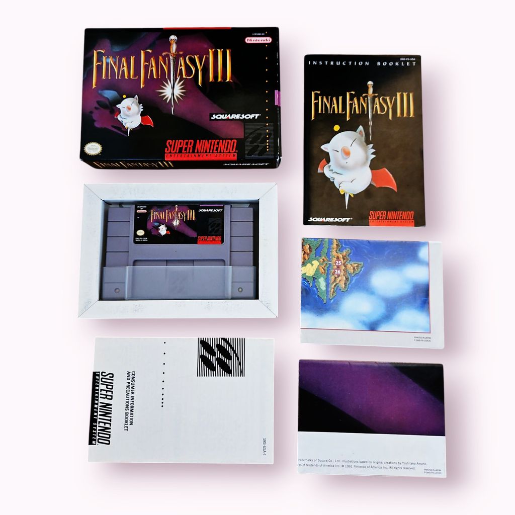 Final Fantasy III (SNES) – Ett Tidigt Mästervärk inom RPG! Dyk in i ett episkt äventyr fyllt med oförglömliga karaktärer, gripande berättelse och strategiska strider i Final Fantasy III (även känd som Final Fantasy VI i Japan). Med sin emotionella berättelse, ikoniska musik och djupa gameplay anses detta vara ett av de bästa rollspelen någonsin. Upplev Magitek, Esper-magi och en av de mest minnesvärda skurkarna i spelhistorien – Kefka!