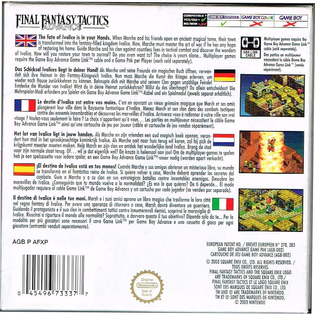 Beskrivning av FINAL FANTASY TACTICS ADVANCE GAMEBOY ADVANCE