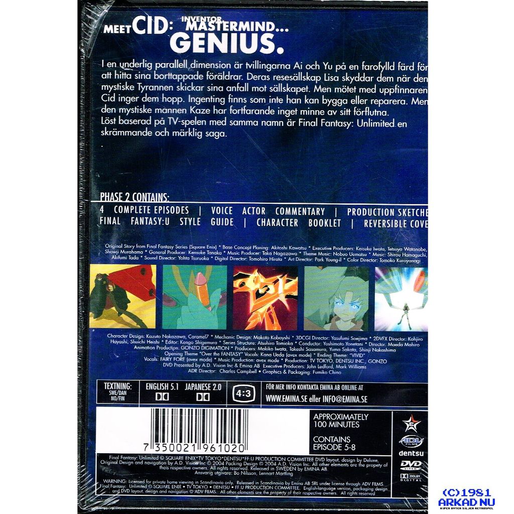 Beskrivning av FINAL FANTASY UNLIMITED PHASE 2 DVD FINAL FANTASY UNLIMITED PHASE 2 DVD DETTA ÄR EN NY PRODUKT
