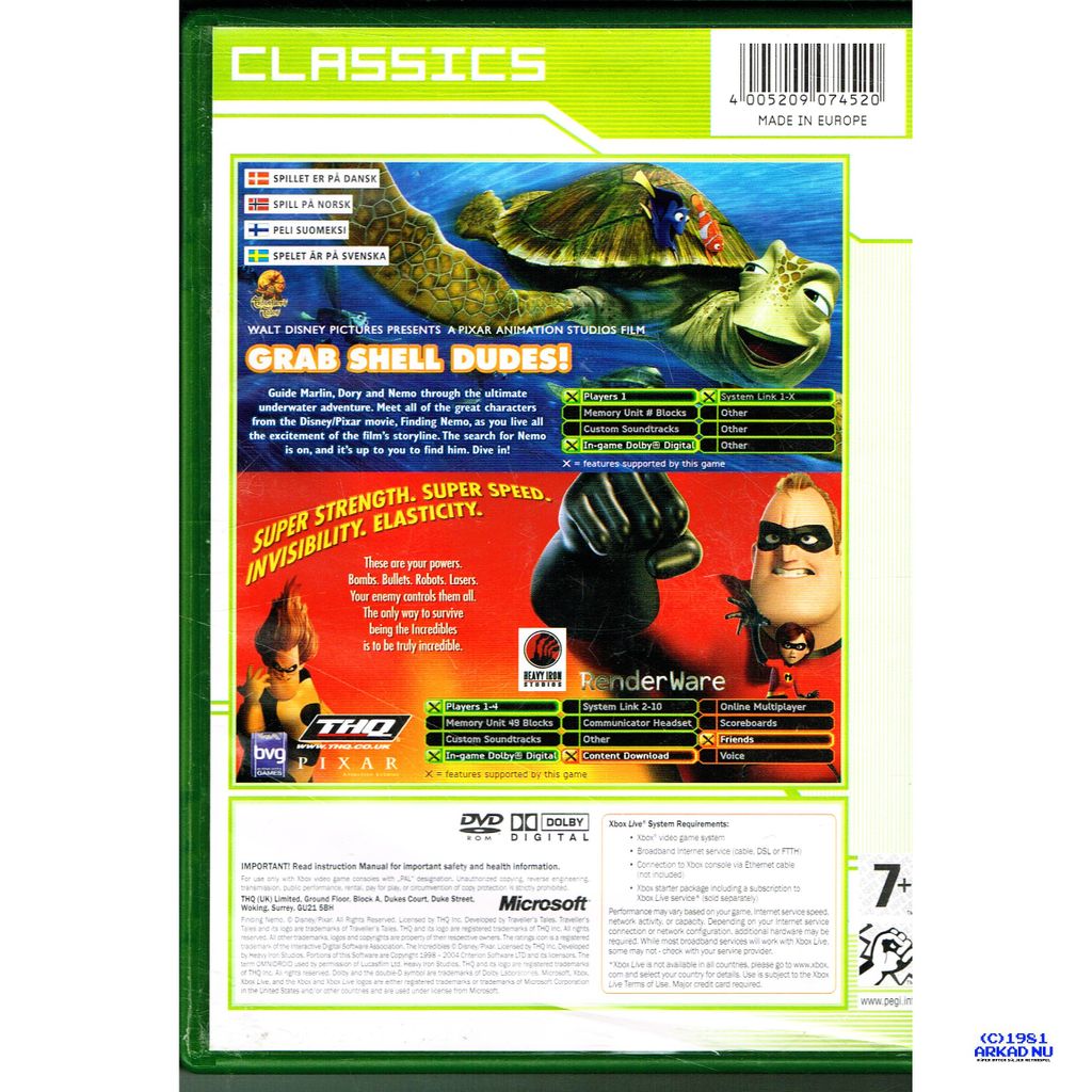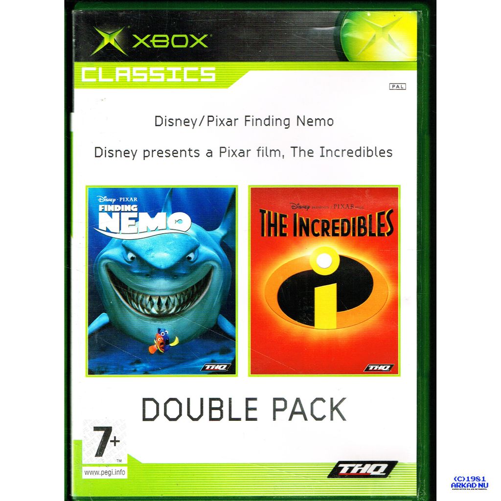Beskrivning av FINDING NEMO + THE INCREDIBLES DOUBLE PACK XBOX FINDING NEMO + THE INCREDIBLES DOUBLE PACK XBOX SVENSK UTGÅVA I BOX UTAN MANUAL