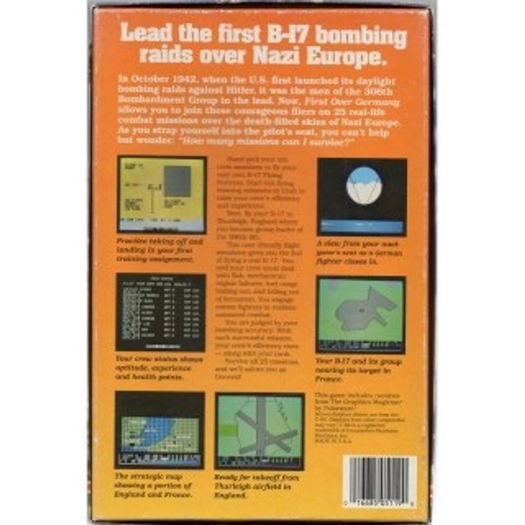 First Over Germany is a simulation of a B-17 bomber group in World War II. The simulation covers the actual events surrounding the formation of the 306th Bomb Group. Its training, and transition to Thurleigh, England, and twenty five missions that a pilot might have flown at that time.