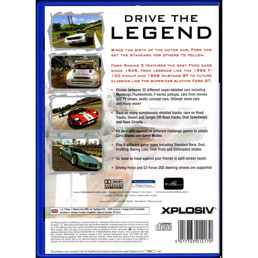 Ford Racing 2 is a 2003 racing video game developed by Razorworks and published by Empire Interactive and Gotham Games.The game was released for the personal computer (PC), PlayStation 2 (PS2), and Xbox. It is the sequel to Ford Racing (2000), and is the second game in the Ford Racing series.