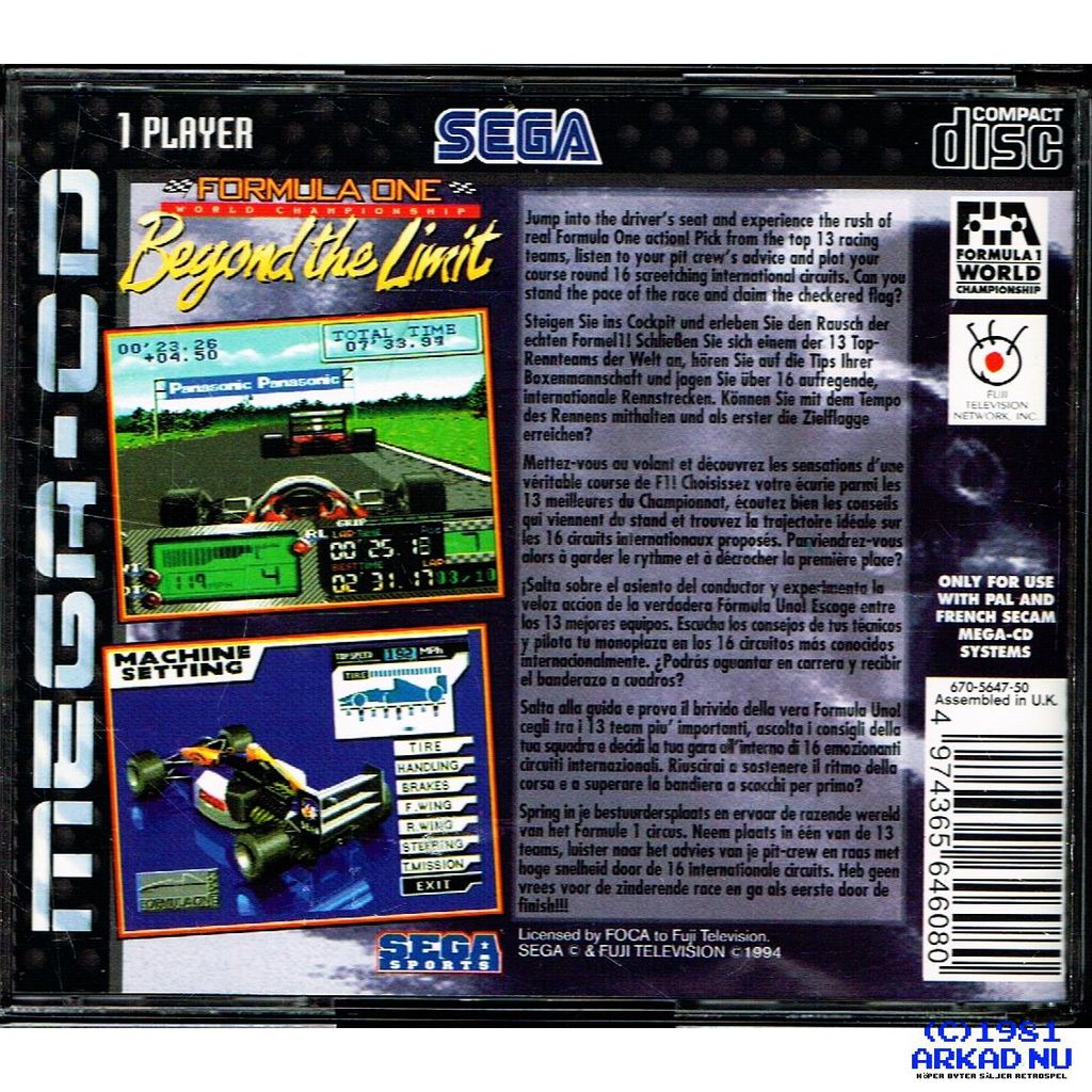 Beskrivning av FORMULA 1 WORLD CHAMPIONSHIP BEYOND THE LIMIT MEGA-CD