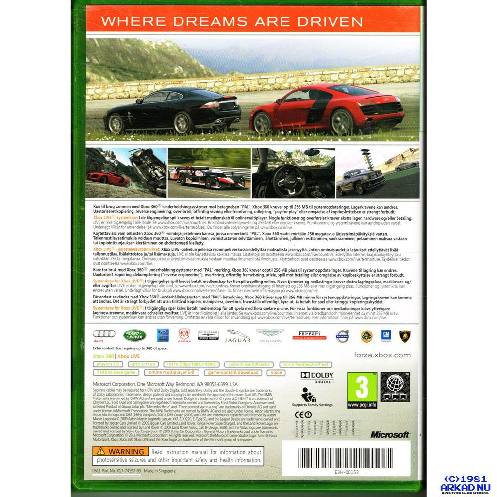 FORZA MOTORSPORT 3 XBOX 360 SVENSK UTGÅVA - E3H-00153
