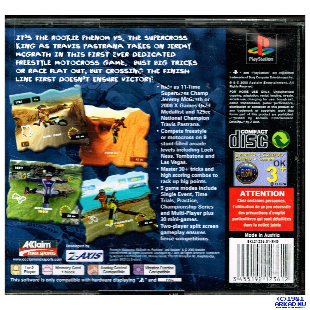Freestyle Motocross: McGrath vs Pastrana is a racing video game developed by Z-Axis, Ltd. and published by Acclaim Entertainment for PlayStation in 2000.