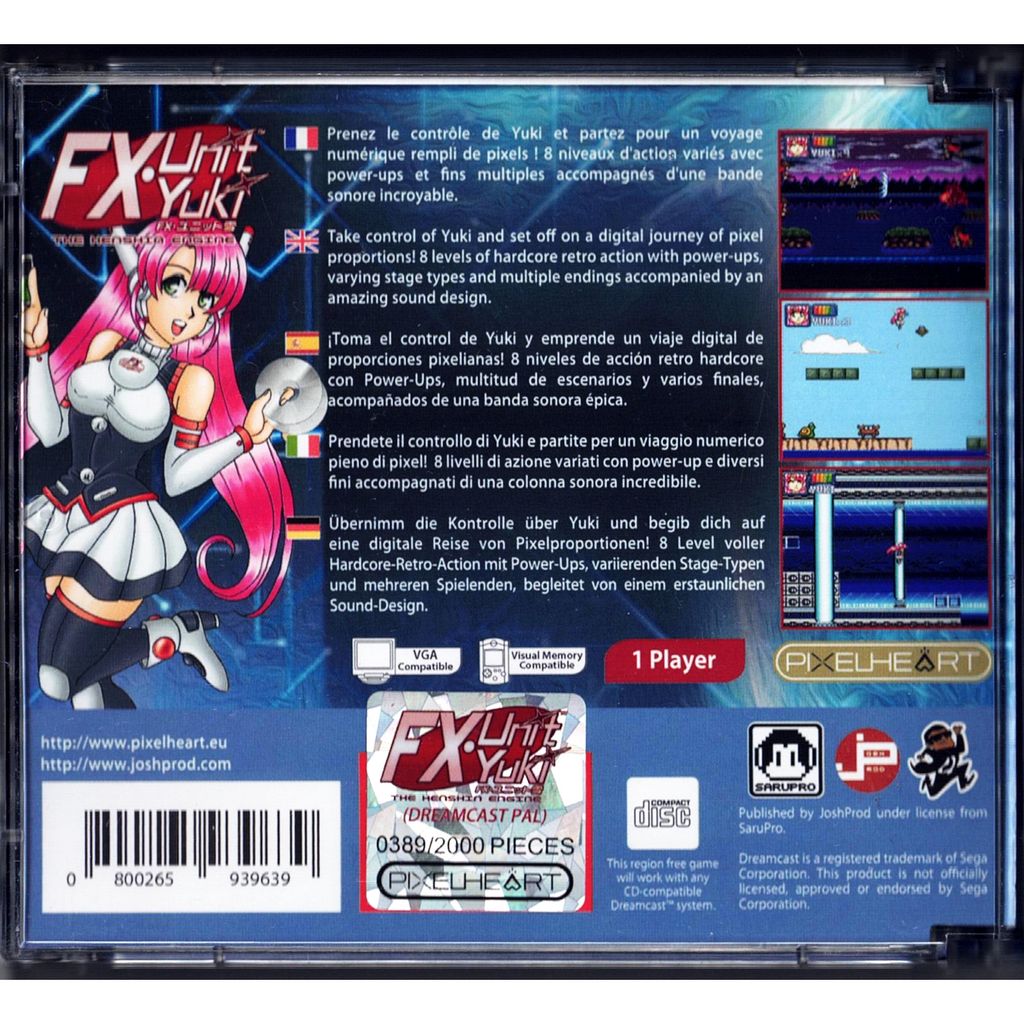 Prevent SG Corporation from hacking the JEC video game! Play as young Yuki Shirakawa, new bêtateuse of the company JEC. Transformed into FX Unit Yuki when she got too close to the FX Engine, she is now able to enter the game and chase the malicious programs of SG Corp and its champion: Ultradrive Unit Geni. Go through the 8 different levels, mixing platform game and shoot’em up, taking care of the many pitfalls, enemies and formidable bosses.