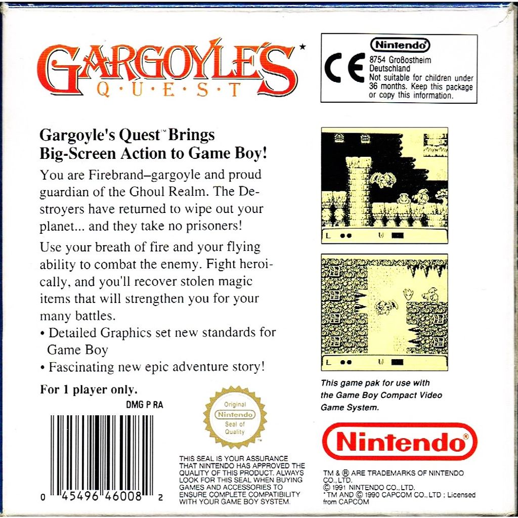 Gargoyle's Quest, (1990) spel till första versionen av den bärbara spelkonsolen Game Boy. I den för tiden ovanliga genrekombinationen plattformsspel/äventyr ska huvudpersonen Firebrand rädda kungariket från en ond kraft genom att under spelets gång bli starkare och klara av uppdrag.