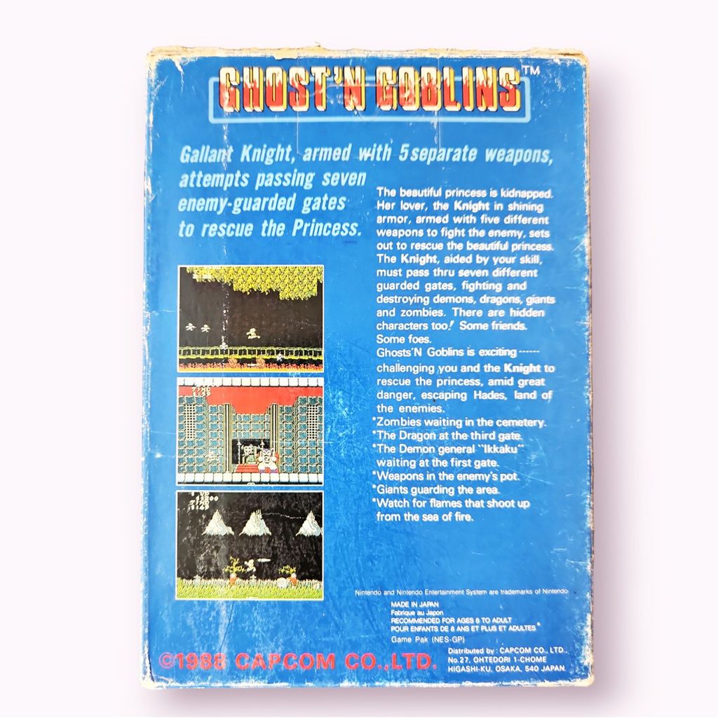 NES-porteringen av Ghosts 'n goblins anses vara en av de svåraste spelen som någonsin gjorts. NES-utgåvan innehåller sämre grafik, mindre musik och något annorlunda spelmekanik än originalet. Andra ändringar är nya sparpunkter, mer stridslystna monster, drakarna har nya anfallsmönster, vapen och utrustning dyker upp på nya ställen, monster kan släppa extraliv, det finns Yashichi-snurror som ökar eller minskar tidsgränsen, ändringar i fjärde och sjätte nivån, spelet går att pausa och med hjälp av en knappsammansätning på titelmenyn så går det att välja nivå. En annan knappsammansättning på spelets slutskärm visar spelets eftertexter