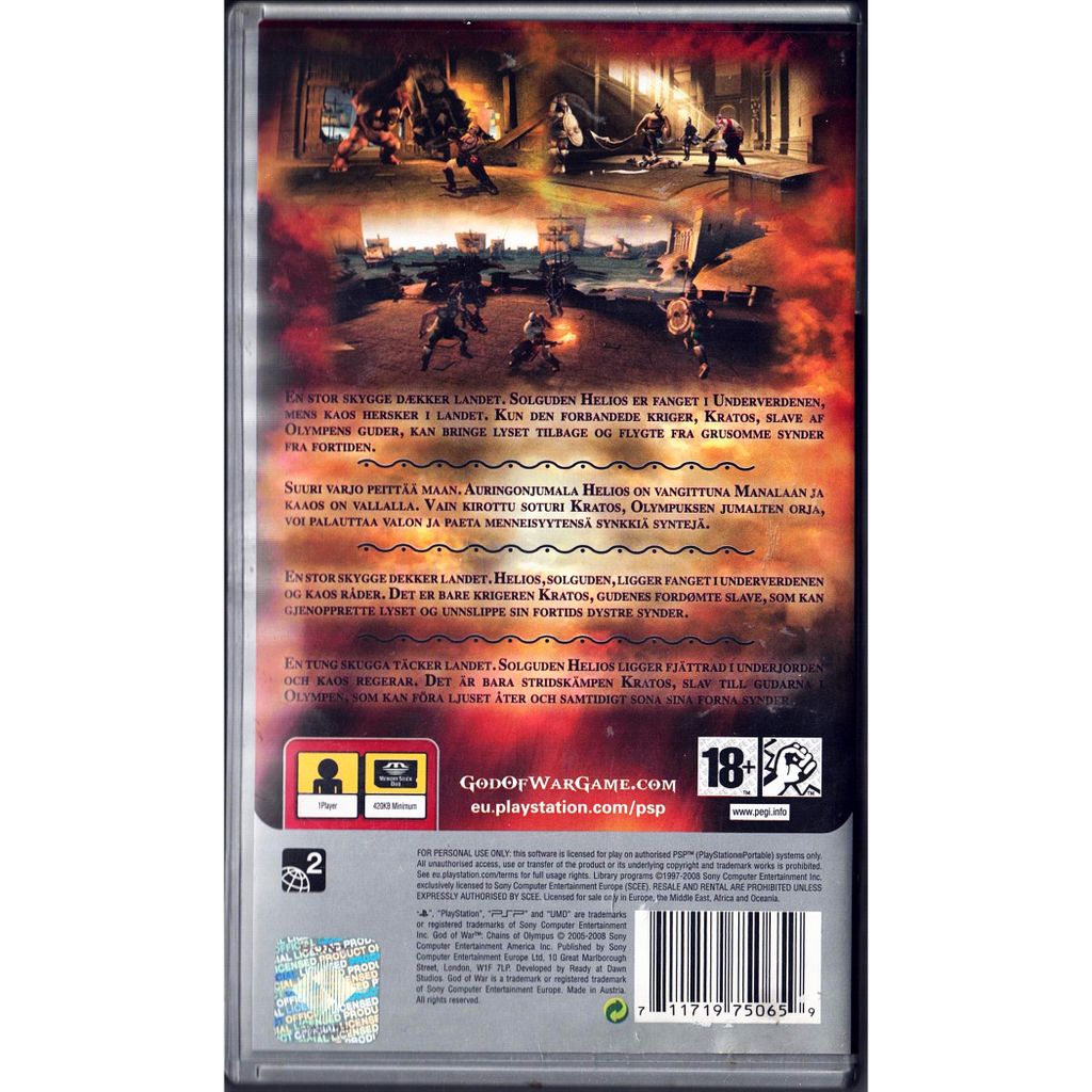 GOD OF WAR CHAINS OF OLYMPUS PSP PLATINUM SVENSK UTGÅVA