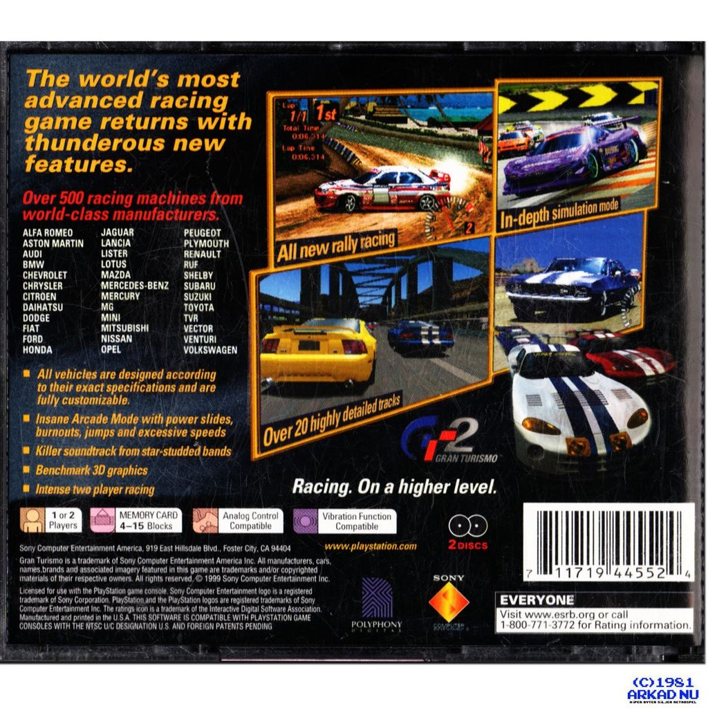 Beskrivning av GRAN TURISMO 2 PS1 NTSC USA