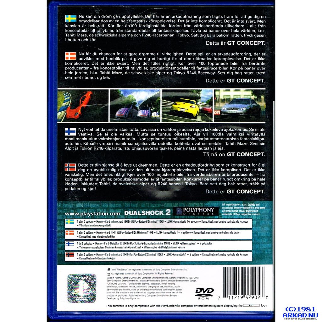 GRAN TURISMO CONCEPT 2002 TOKYO GENEVA PS2 SVENSK UTGÅVA - SCES-50858
