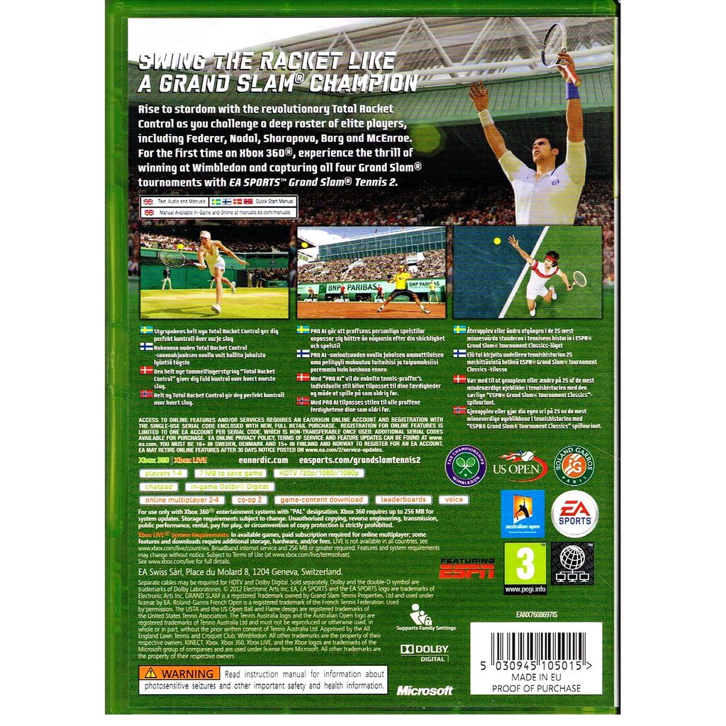 Grand Slam Tennis 2 is a tennis video game, developed by EA Canada, it was released for the PlayStation 3 and Xbox 360 on February 10, 2012 in Europe and February 14, 2012 in North America. A downloadable demo was released on January 10 for both platforms. It is the sequel to Grand Slam Tennis.