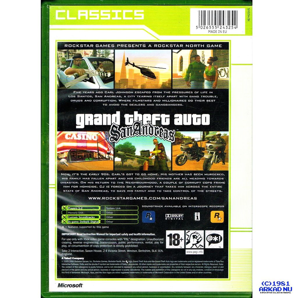 GRAND THEFT AUTO SAN ANDREAS XBOX CLASSICS