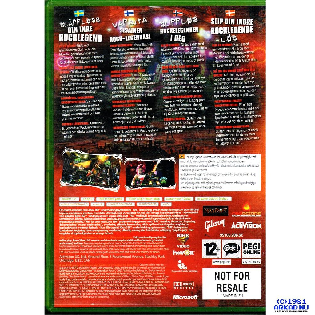 Kliv upp pĂ„ scenen och rocka loss i Guitar Hero III: Legends of Rock! Med ikoniska lĂ„tar frĂ„n bland andra Guns Nâ Roses, Metallica, Kiss och The Rolling Stones fĂ„r du uppleva adrenalinet frĂ„n live-konserten direkt i vardagsrummet. Spela solo eller utmana vĂ€nner i dueller, och kĂ€nn hur varje riff och solo fĂ„r publiken att jubla.