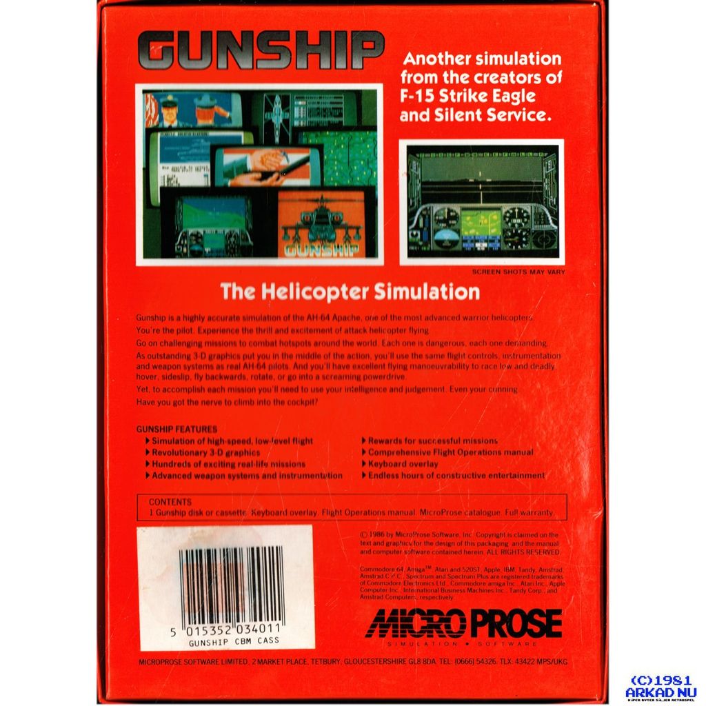 Beskrivning av GUNSHIP C64 KASSETT