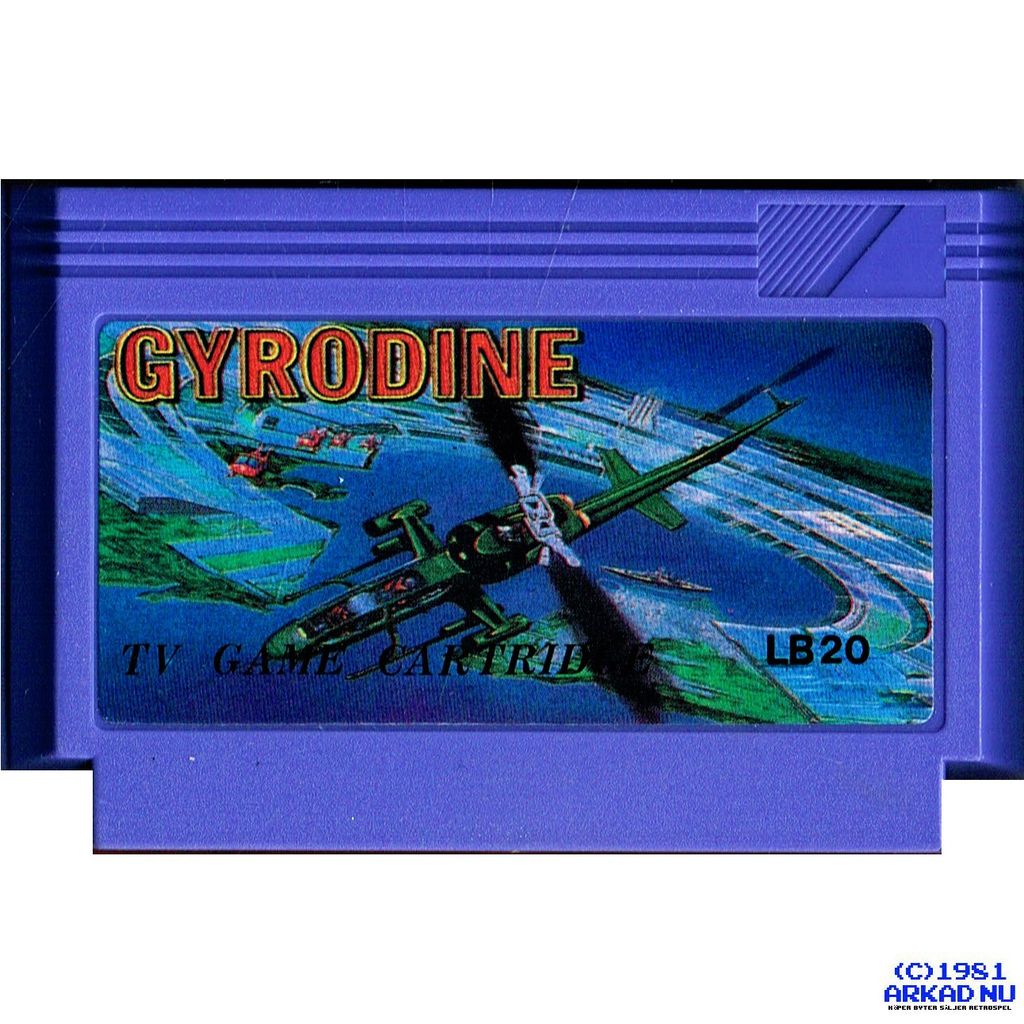 Gyrodine (Jairodain) is a top-down, vertical, helicopter scrolling shooter for the Nintendo Entertainment System / Famicom, MSX and arcade developed by Crux and published by Taito in 1984.
