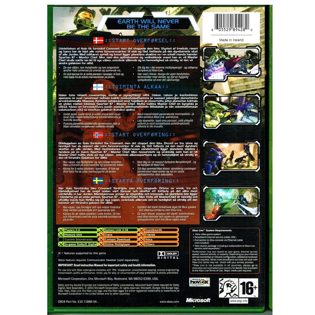 I Halo 2 fortsätter historien från det första spelet Halo: Combat Evolved. "Covenanterna" har upptäckt jorden och den enda kvarvarande supersoldaten från Spartan-II projektet, Master Chief, får i uppdrag att borda det covenantskepp som landat över den afrikanska staden New Mombasa. Samtidigt fortsätter Covenants ledare, "The Prophets", sökandet efter fler Halos efter att Master Chief förstört den första funna Haloringen. Covenanterna har tron att en aktivering av Halo ska leda till "The Great Journey" (Den Stora Resan). Vad de inte vet är att Haloringarna byggdes för att stoppa en annan utomjordisk ras, "The Flood", som är en zombieliknande ras som genom infektion tar över varelsers kroppar. Med hjälp av ringarna, som är enorma vapen i omloppsbana kring planeter, dödade Forerunners (Ringarnas skapare) allt liv i galaxen i ett försök att stoppa the Flood.