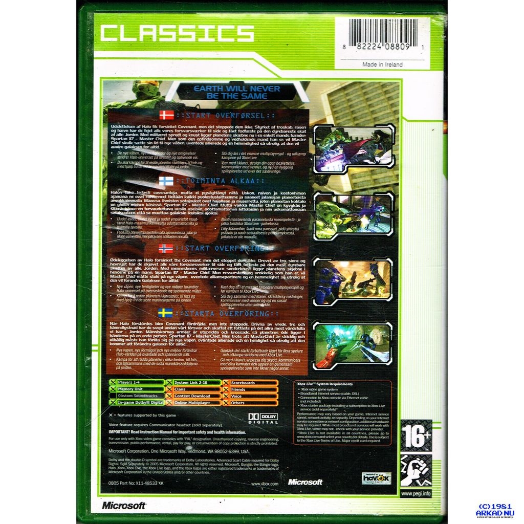 I Halo 2 fortsätter historien från det första spelet Halo: Combat Evolved. "Covenanterna" har upptäckt jorden och den enda kvarvarande supersoldaten från Spartan-II projektet, Master Chief, får i uppdrag att borda det covenantskepp som landat över den afrikanska staden New Mombasa. Samtidigt fortsätter Covenants ledare, "The Prophets", sökandet efter fler Halos efter att Master Chief förstört den första funna Haloringen. Covenanterna har tron att en aktivering av Halo ska leda till "The Great Journey" (Den Stora Resan). Vad de inte vet är att Haloringarna byggdes för att stoppa en annan utomjordisk ras, "The Flood", som är en zombieliknande ras som genom infektion tar över varelsers kroppar. Med hjälp av ringarna, som är enorma vapen i omloppsbana kring planeter, dödade Forerunners (Ringarnas skapare) allt liv i galaxen i ett försök att stoppa the Flood.