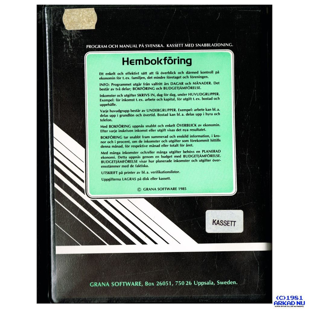 Beskrivning av HEMBOKFÖRING C64 KASSETT HEMBOKFÖRING C64 KASSETT BIG BOX GRANA SOFTWARE KOMPLETT I BOX