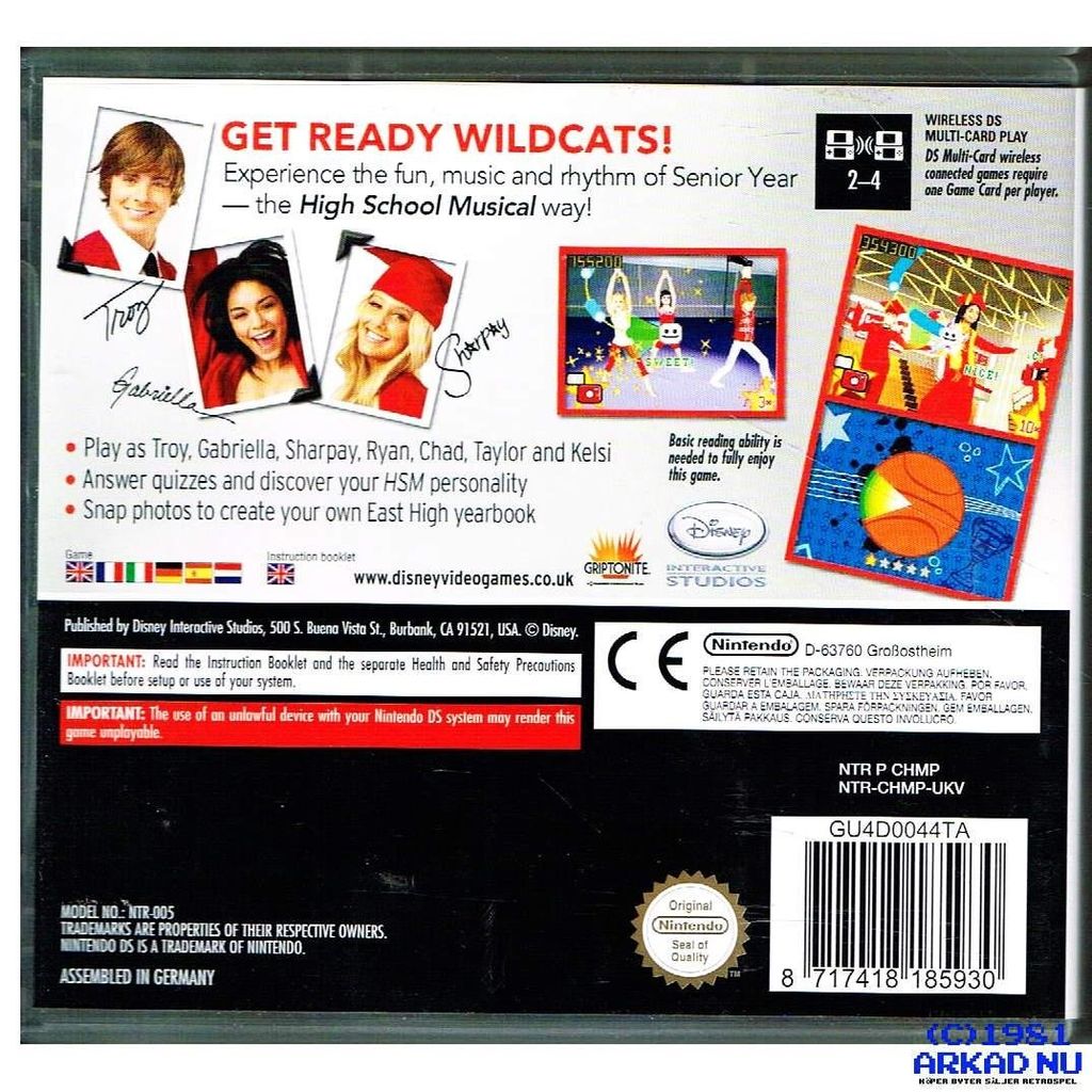 Kliv in i East Highs sista skolår och dansa till en kärleksfull mix av favoritlåtar från High School 1–3! Spelet kombinerar rytmbaserade minispel, fotoredigering med stylus, personlighetsquiz och humoristiska avsnitt med Troy, Gabriella, Sharpay och resten av gänget. Anpassat för både solo och upp till 4‑spelarläge lokalt.