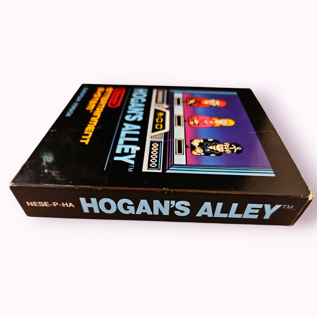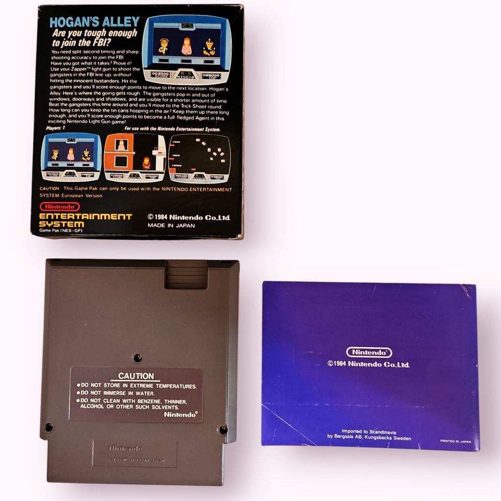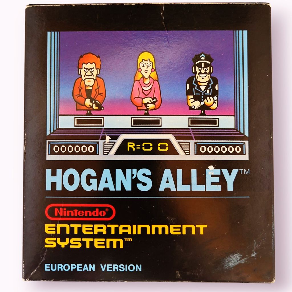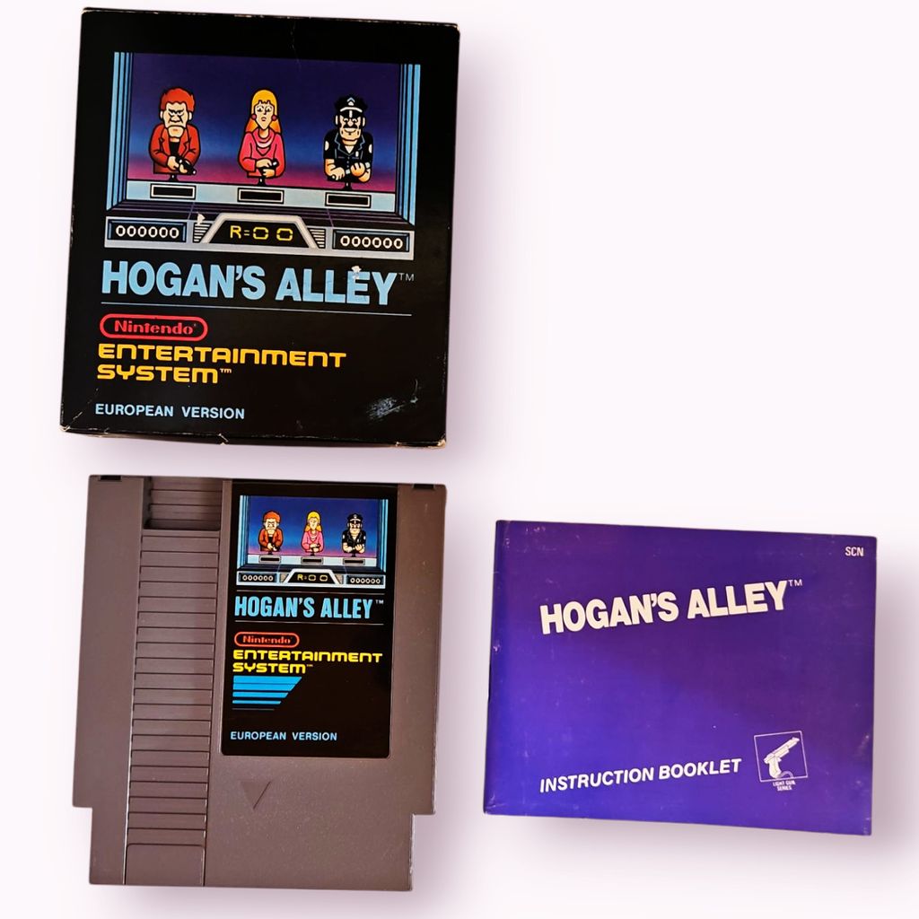 Ta fram NES Zapper och träna upp din träffsäkerhet i Hogan’s Alley, ett av de första ljuspistolsspelen till NES! Skjut banditerna – men akta civila! Spelet testar dina reflexer i olika lägen, från stadsmiljöer till rörliga mål och flaskkastning på skjutbanan.
