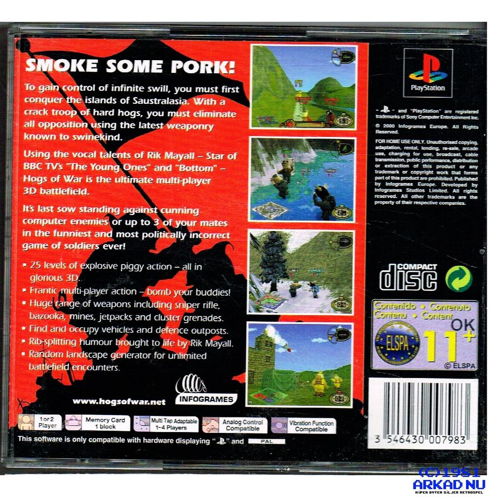 Hogs of War is a turn-based tactics video game developed by Infogrames Sheffield House and published by Infogrames, released for the PlayStation in 2000 for Europe on 6 June and North America on 29 September and later for Microsoft Windows in Europe only on 3 November 2000. The game is set in a First World War-era where anthropomorphic pigs engage in combat. Play proceeds in a turn-based fashion, with 3D graphics, vehicles, a career-based single-player mode, and voice-over work (both narration and for characters) by British comedian Rik Mayall.