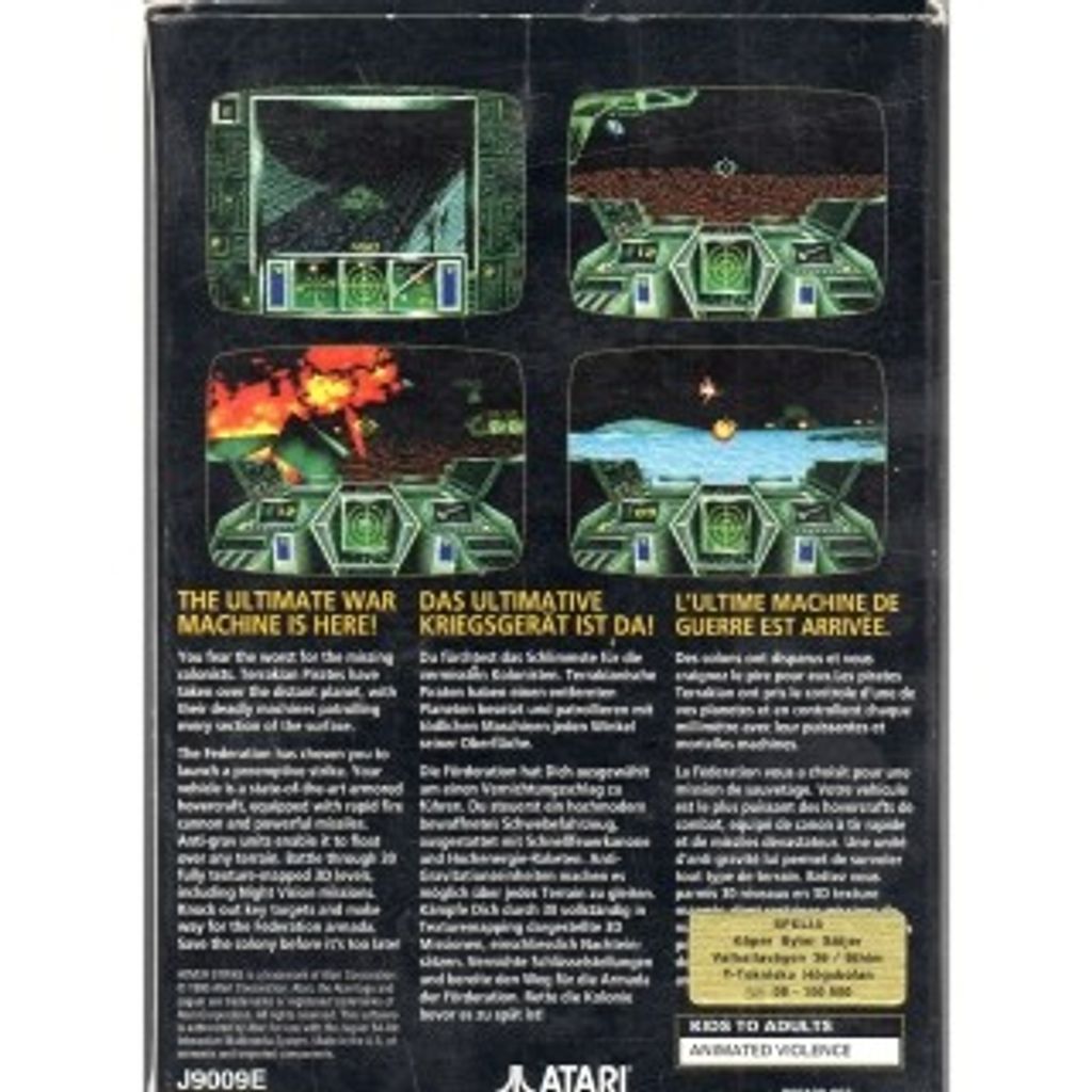Hover Strike is a game for the Atari Jaguar which was released in 1995.The game takes place in the future where the hero is placed in a Hovercraft. The game allows you to shoot your way through 30 different 3D levels which include terrain like ice,water,mountains and an enemy base you must infiltrate. Some of the weapons include guided missiles, missiles,grenades and lasers. Most of the enemies in the game are low flying aircraft that follow and shoot at the player. There are also turrets and enemy hovercrafts that are on the battlefield. Most of the missions order you to take down a certain amount of enemy rockets, sensors,or re spawning bases . Like T-Mek, it began life as an update to the classic arcade game Battlezone but was renamed when it drifted from the source material.