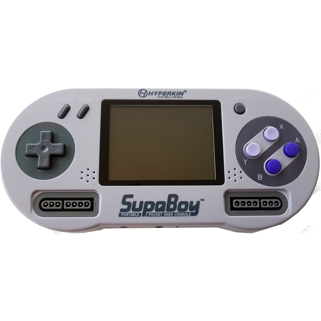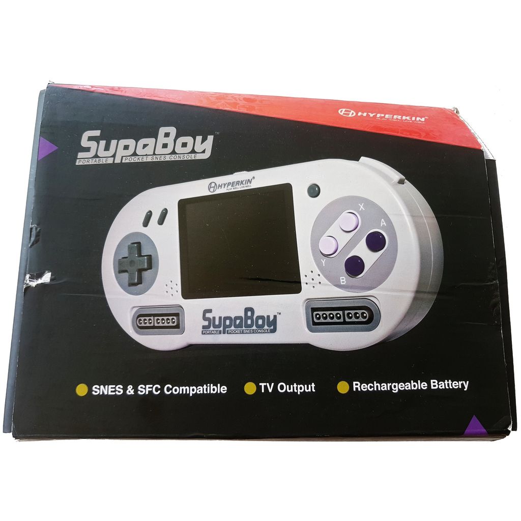 SupaBoy är en bärbar konsol från Hyperkin, som även kan anslutas till en TV via AV-utgången och kan spela Amerikanska, Europeiska och Japanska Super Nintendo / Super Famicom kassetter.