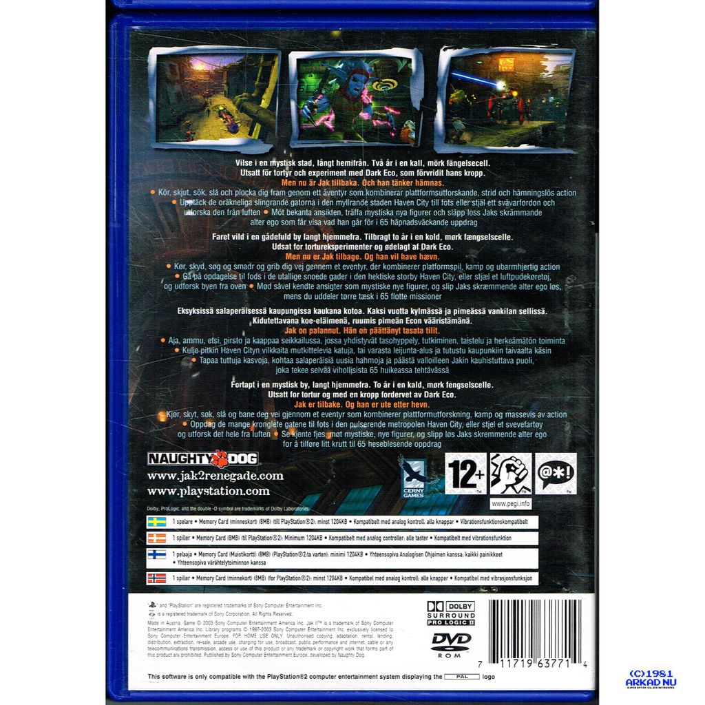 JAK II RENEGADE PS2 SVENSK UTGÅVA -SLES-51608