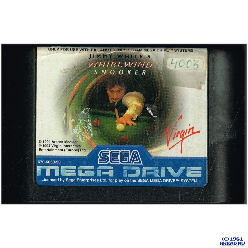 JIMMY WHITES WHIRLWIND SNOOKER MEGADRIVE - 670-6050-50