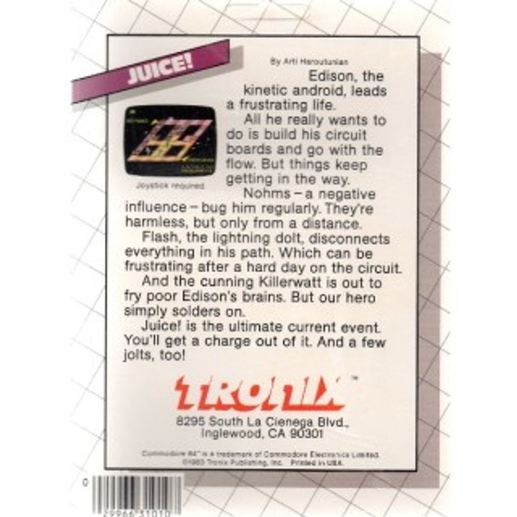 Juice är ett Q*bert liknade spel där du är Edison den kinetiska androiden som ska reparera ett kretskort så strömmen kan flöda igenom igen,