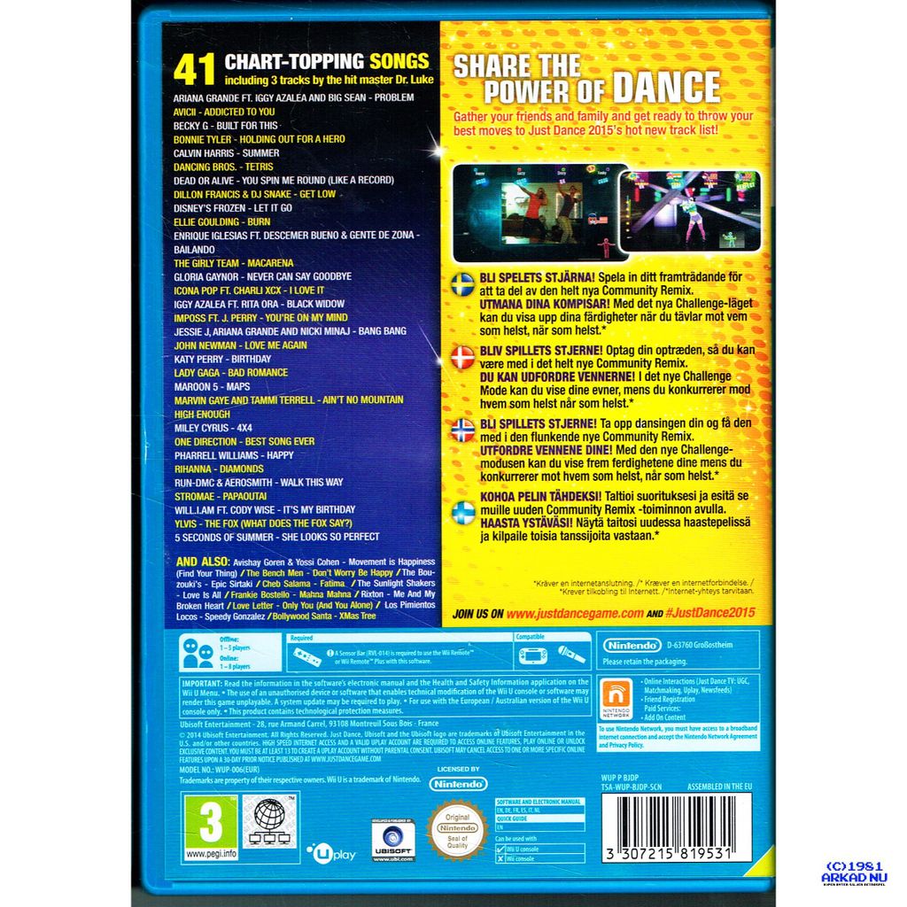 JUST DANCE 2015 WII U - SVENSK UTGÅVA - TSA-WUP-BJDP-SCN