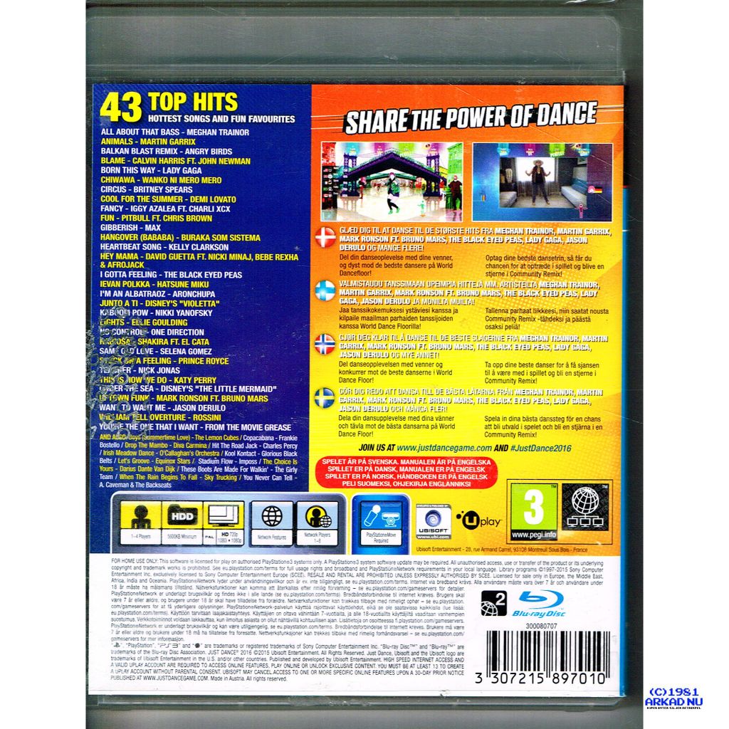 Den bästsäljande serien är tillbaka i år med Just Dance 2016! Som varje år kommer Just Dance med de bästa låtarna, som "Blame" av Calvin Harris ft. John Newman, och "Uptown Funk" av Marc Ronson ft. Bruno Mars att dansa och sjunga med i, samt gamla skatter som "Let's Groove" av Earth, Wind and Fire, vilket gör Just Dance till ett måste när man samlas med familjen och vännerna! Låtarnas universum är mer kreativa och häpnadsväckande än någonsin, och ger spelare en unik och njutbar dansupplevelse.