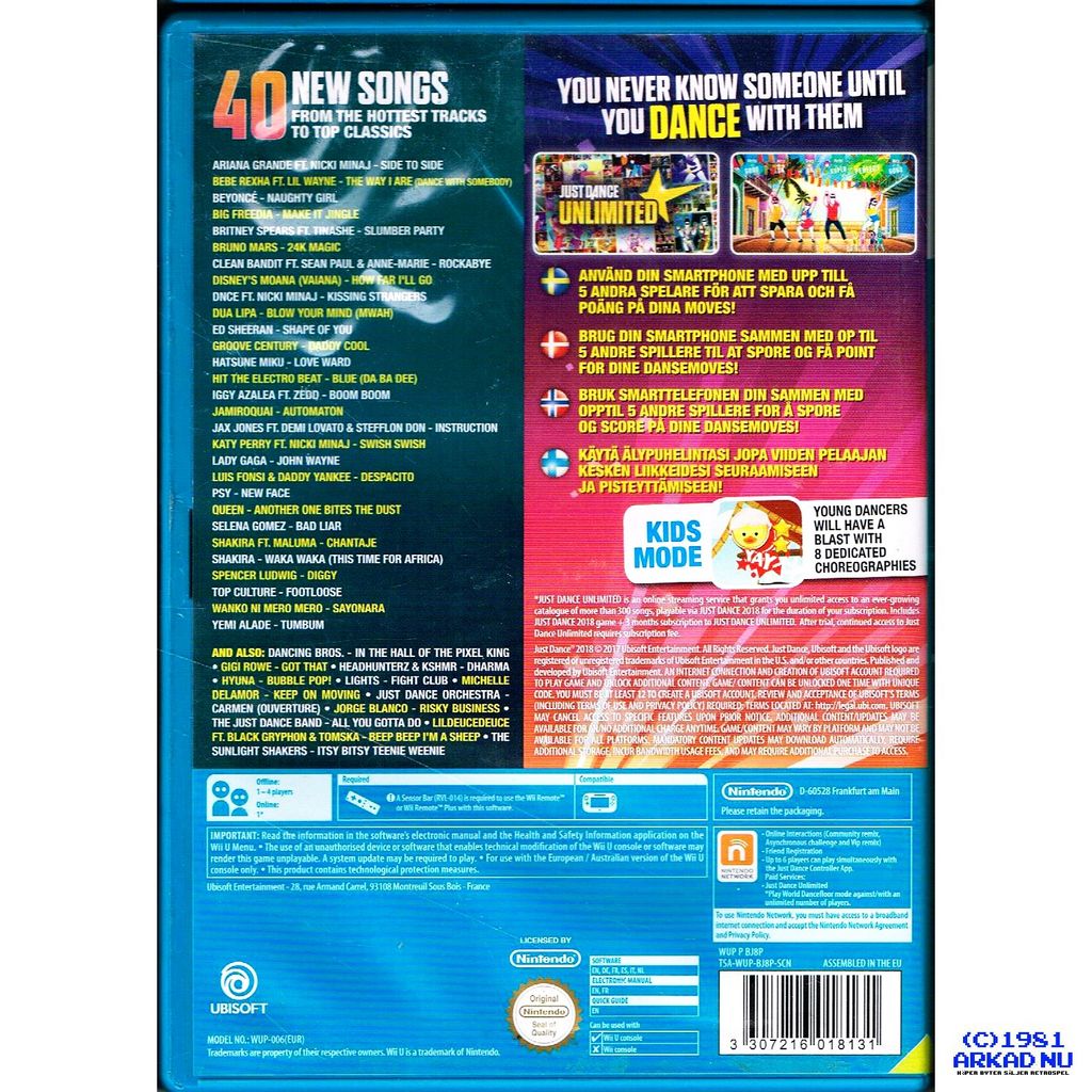 JUST DANCE 2018 WII U - TSA-WUP-BJ98P-SCN