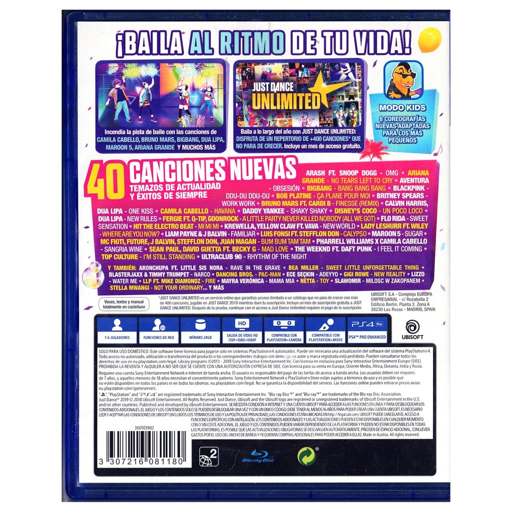 Beskrivning av JUST DANCE 2019 PS4 SPANSK UTGÅVA